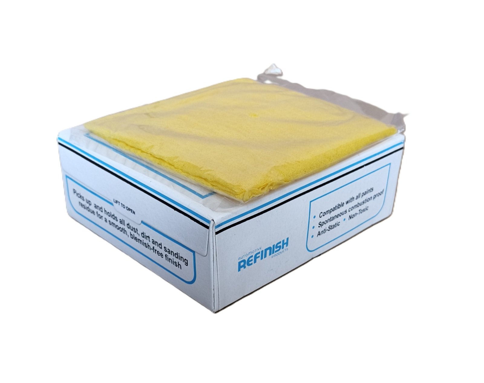 Refinish Tack Cloth adalah kain khusus berwarna kuning yang digunakan untuk membersihkan debu halus, kotoran, dan partikel kecil pada permukaan sebelum proses pengecatan. Kain ini memiliki lapisan perekat ringan yang efektif menangkap debu tanpa meninggalkan serat, sehingga membantu menghasilkan hasil pengecatan yang lebih halus dan maksimal.